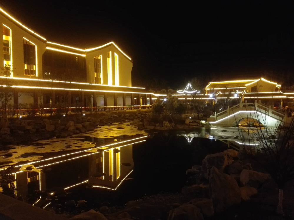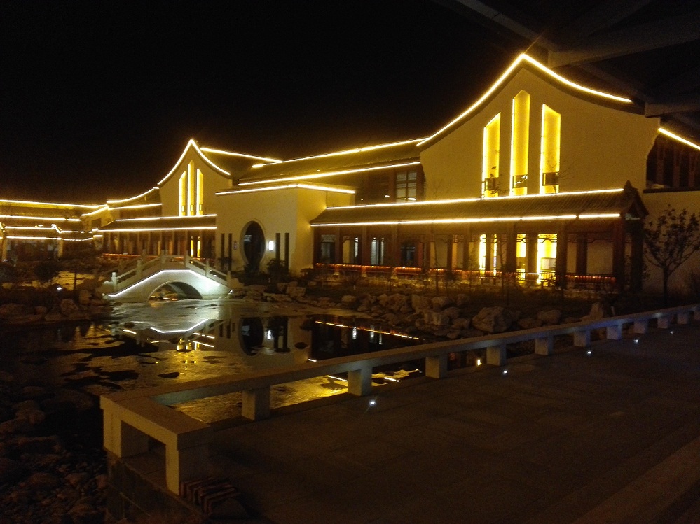 夜晚的東海溫泉大酒店流光溢彩,節日氛圍濃厚。