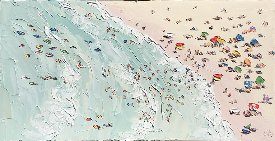 Sally West是澳大利亞最知名的藝術(shù)家之一,她的作品頗受?chē)H藏家的青睞。這里為大家展示她的最新創(chuàng )作海灘系列。自由奔放的涂抹盡顯夏日海灘休閑風(fēng)情。精準嫻熟的色彩與恣意的觸痕,讓雖是色塊的展現的畫(huà)面如此鮮活生動(dòng),仿佛可以聽(tīng)見(jiàn)海浪聲聲與人聲鼎沸。